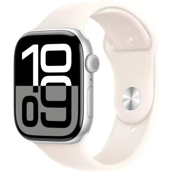 Apple Watch Series 10 46 мм (алюминиевый корпус, серебристый/звездный свет, спортивный силиконовый ремешок M/L)